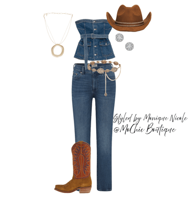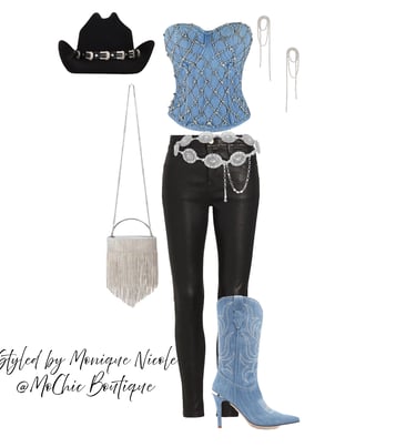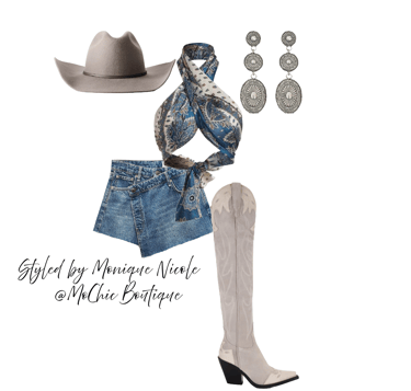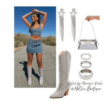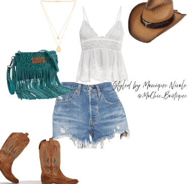**Chic Footwear**: Your outfit wouldn't be complete without the perfect pair of boots. Opt for cowboy boots adorned with fringe, rhinestones or embroidery to enhance your ensemble.