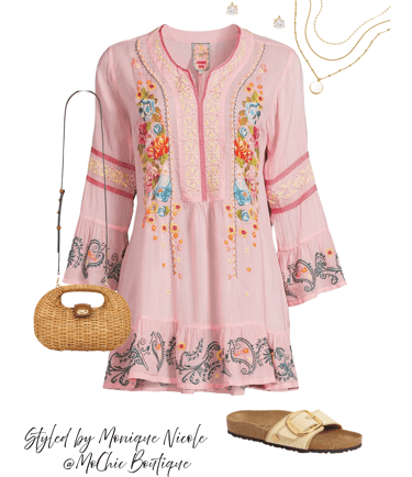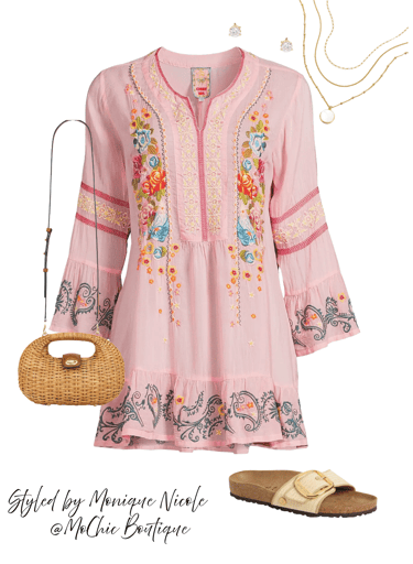 Blush Boho Vibes: Bring on the laid-back luxe with a boho pink embroidered tunic — a perfect blend of breezy comfort and summer style.