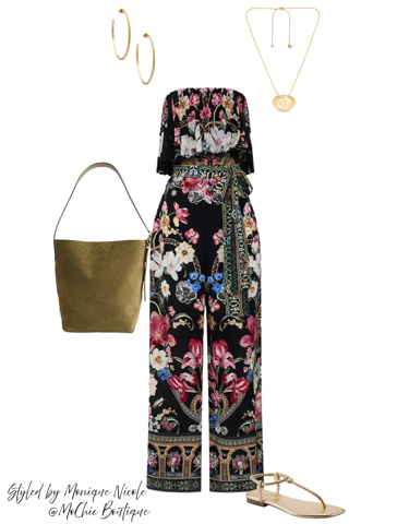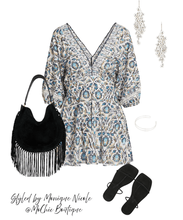 Playful & Polished: Step into effortless summer style with the Chantal printed short romper paired with a black fringe shoulder bag gives a lightweight, flirty feel that is made for sunshine.