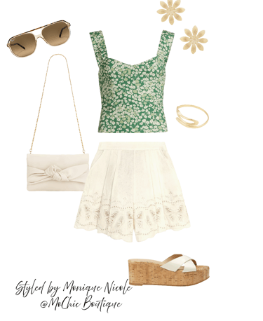 Butterfly Days: Step into sunshine with playful charm in butterfly embroidered linen shorts paired with a floral tank top for the ultimate summer-ready look.