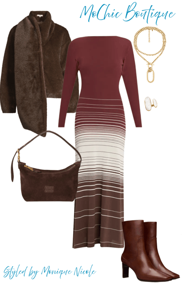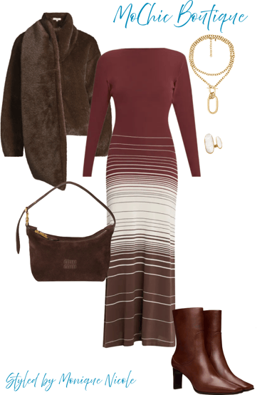 • Faux Fur Scarf Jacket & Striped Knit Maxi