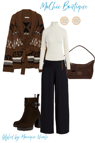 • Western Fringe Cardigan & Wide-Leg Knit Pants