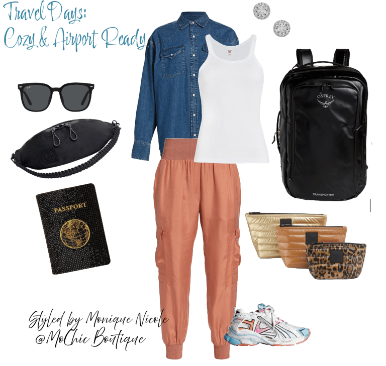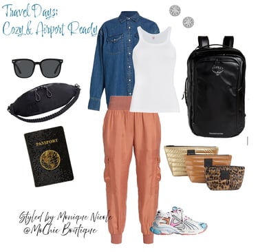 Whether you're on a red-eye flight, bus ride, or multi-leg train journey, your travel-day outfit needs to priortize comfort while still making you feel presentable. My Go-To Travel look would be soft joggers, a tank and a lightweight denim jacket, slip-on sneakers and a travel backpack. Layering is key for managing unpredictable temperatures on planes or in terminals. Joggers and relaxed tee keep you comfortable during long sits.