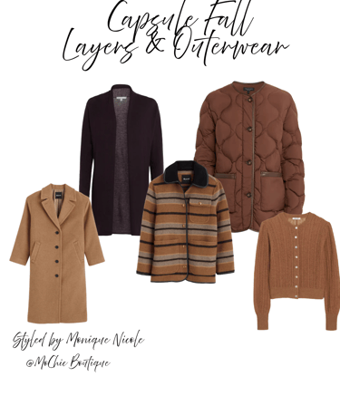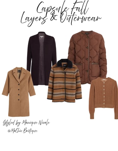 Layers & outerwear are vital in any boho capsule wardrobe. Start with an oversized cardigan or duster for style and warmth, and a shacket or woven jacket for an added textural element. A puffer or faux-shearling jacket is perfect for colder weather, while a long wool coat in camel or taupe brings sophistication and functionality.